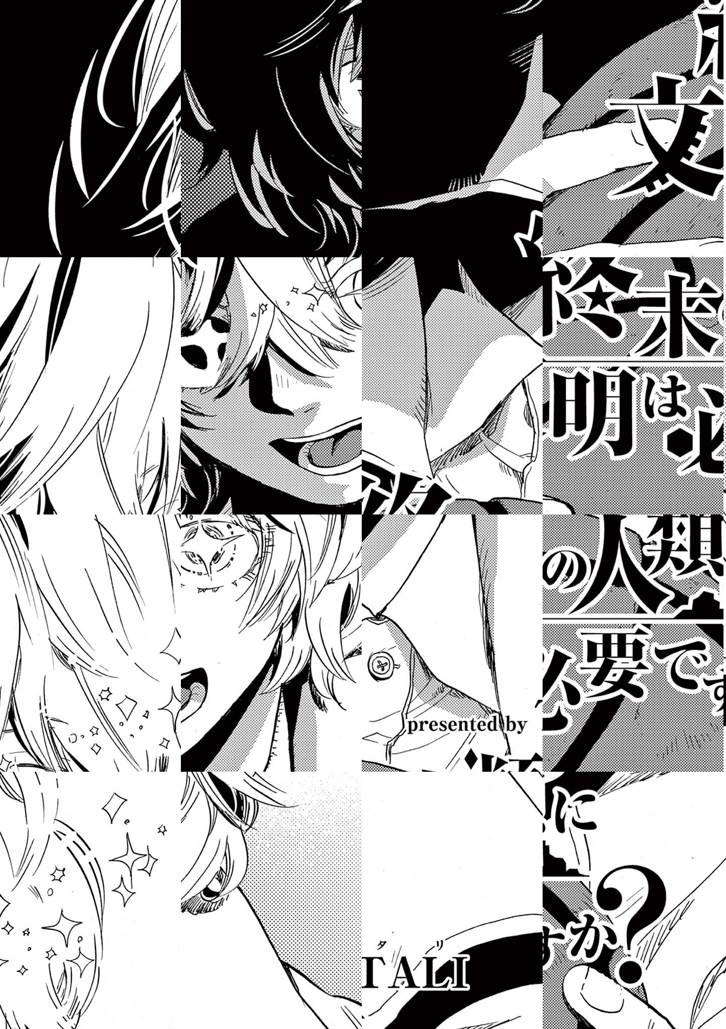 西暦××××年。「神」なるものが統(す)べるこの終末世界で、地を這うように生きる人間ども。数少なくなった人類だが、そんな中、カサゴは「神」を盲信し、命じられるままに人間から文明を奪い取っていくという「文明回収」業に手を染めていた。一方、仕事の途中でカサゴが出会ったメバルは、「神」に対する猜疑心を隠そうともしなかった。カサゴは親を捜し、メバルは親の仇を捜しているという対照的なふたりが、「文明」に触れながら、回収の旅を続けることに…近未来の摩訶不思議終末紀行!! ◆作者コメント はじめまして、TALIです。「終末の人類に文明は必要ですか?」はアナログレコードを初めて見た人が「これなんなんですか? え? 音楽聴くものなんですか? へー」となっている感じを漫画にしていくと面白そうだなー、と思ったのがきっかけのひとつです。エモいね。